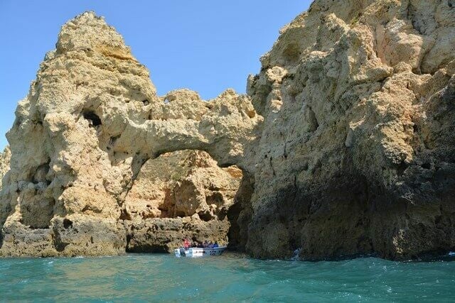 Hier krijg je een mooi zicht op de meest unieke rotsformaties. is een landtong met een groep rotsformaties langs de kustlijn van de stad Lagos, in de Portugese regio van de Algarve. Bestaande uit geelgouden klifachtige rotsen tot 20 meter hoog, zijn ze een van de beroemdste toeristische attracties van Portugal